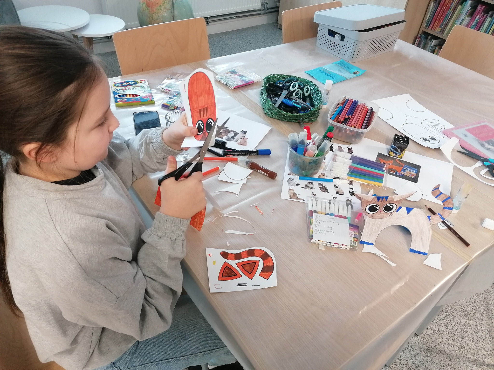 Wspólnie wykonaliśmy z wycinanki urocze kotki pełne kolorów i dziecięcej fantazji. ![]()